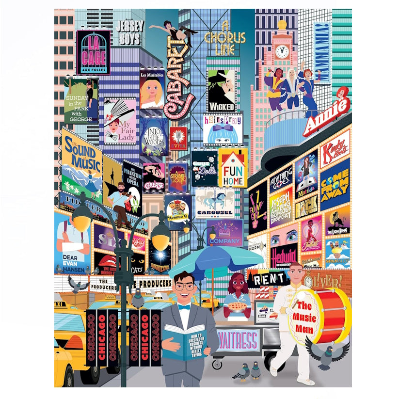 Featuring spectacular illustrations inspired by musicals like Cabaret, Wicked, A Chorus Line and Phantom of the Opera, the finished puzzle yields a bucket list of sublime shows to see.