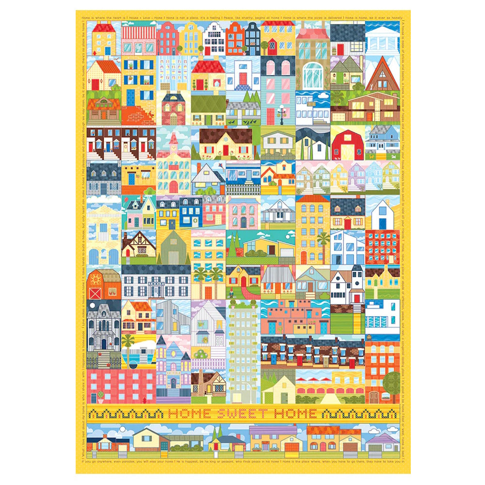 A house is made of bricks and beams. A home is made of hopes and dreams. There are many types of homes to dream about in this 1000-piece Home Sweet Home quilt puzzle illustrated by Cobble Hill Creations.