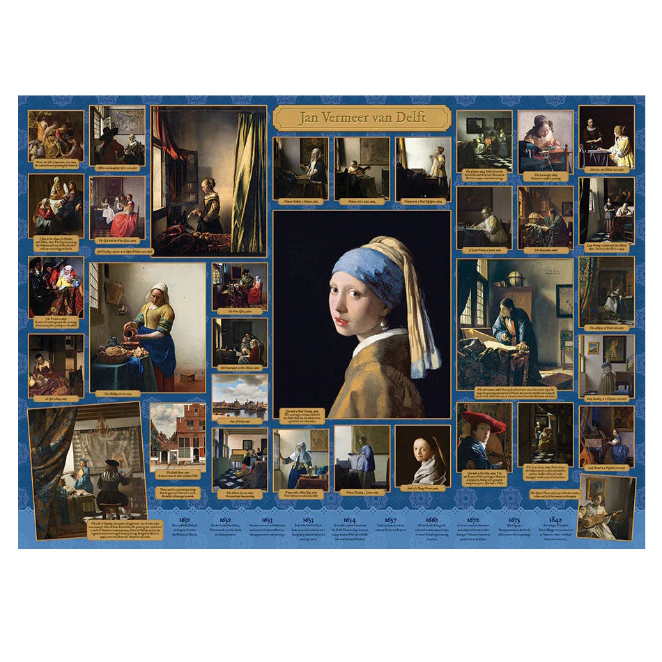 "Vemeer" highlights the life of Jan Vermeer van Delft from his baptism to revival from obscurity, nearly 200 years after his death. A 1000 piece collage of fine art from the 17th century designed by Cobble Hill Creations.