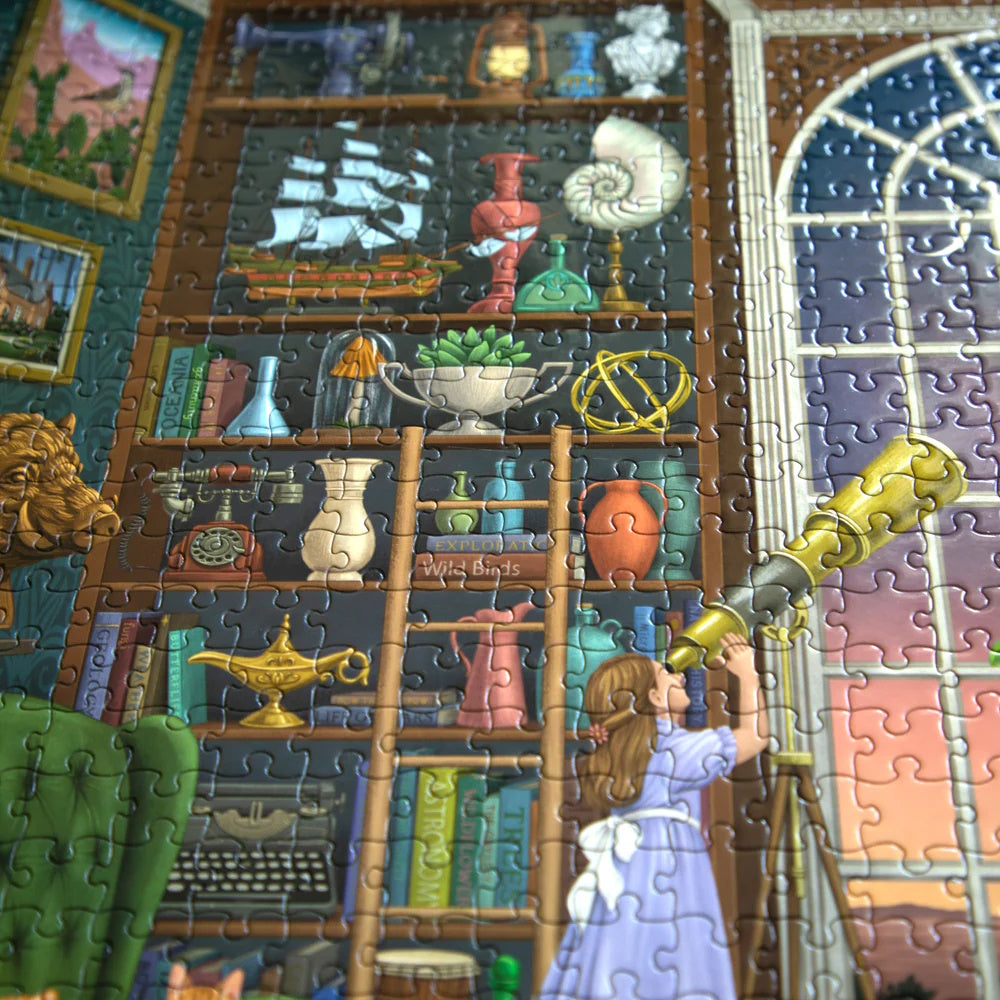 Piece together the Alchemist's Library, brimming with exotic books and curios, in this detailed 1000 piece jigsaw puzzle from eeBoo.