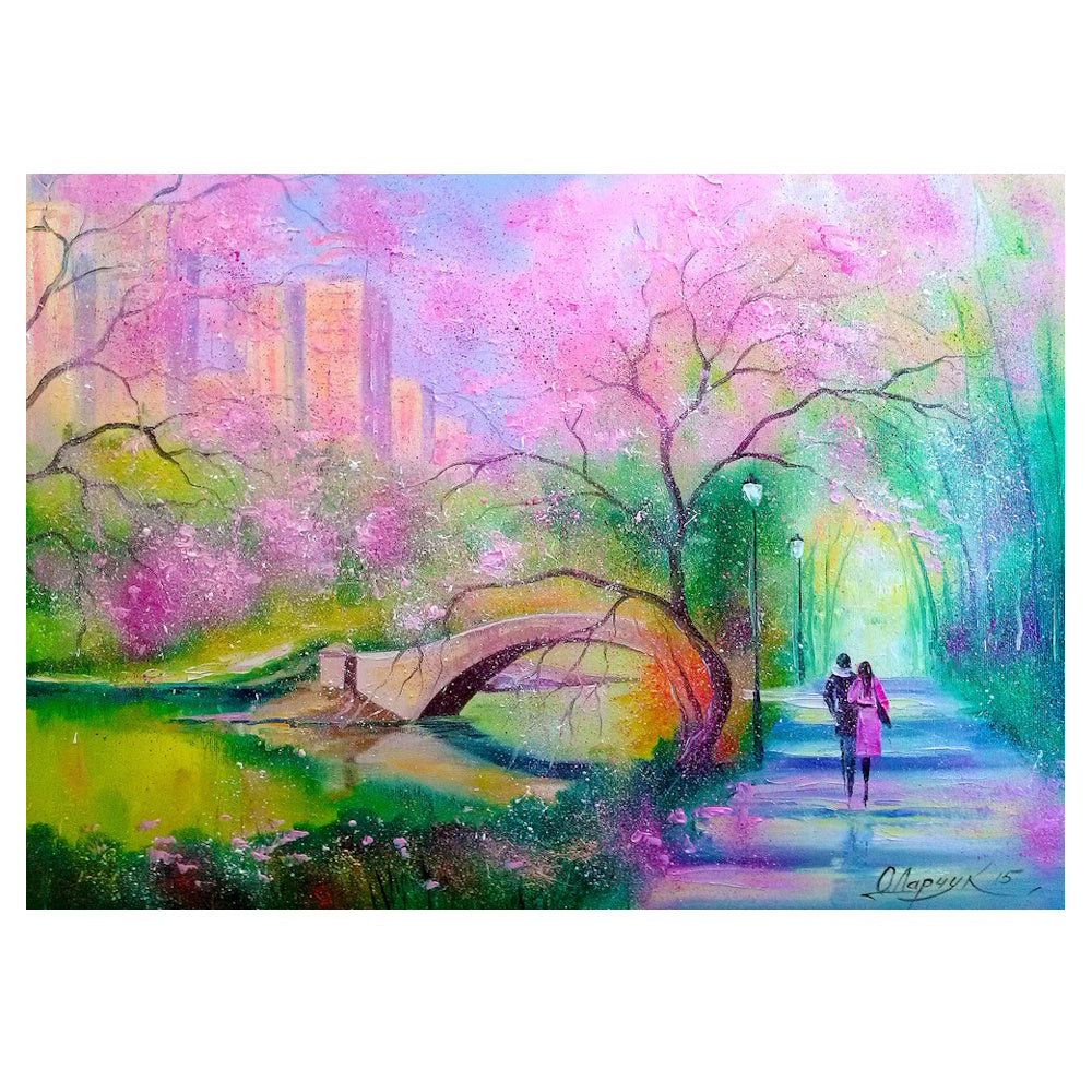 Step into a dreamy cityscape where soft pastels and blooming cherry blossoms bring the park to life. This romantic artwork captures a couple strolling beneath flowering trees, with gentle light illuminating the path ahead. Perfect for puzzlers who love impressionistic art, peaceful scenes, and vibrant colour blends, this puzzle offers both relaxation and beauty in every piece.