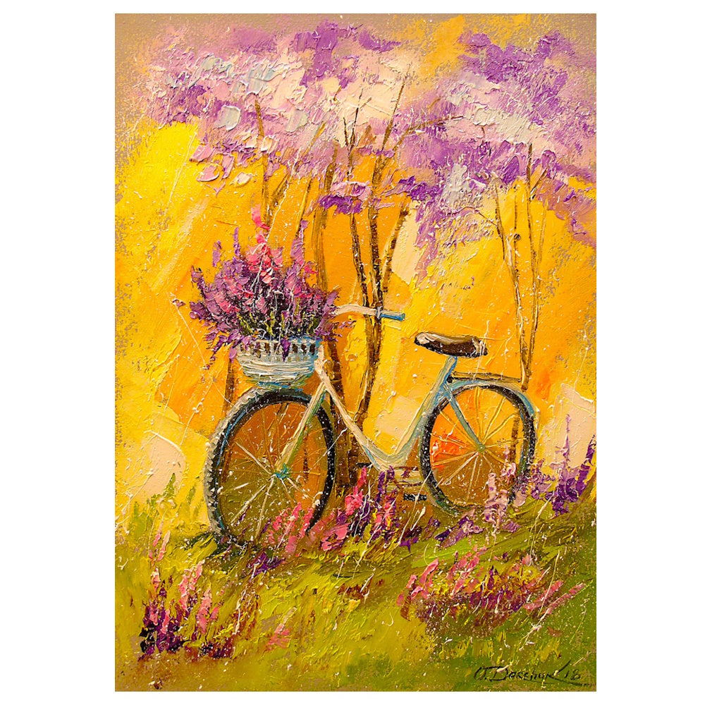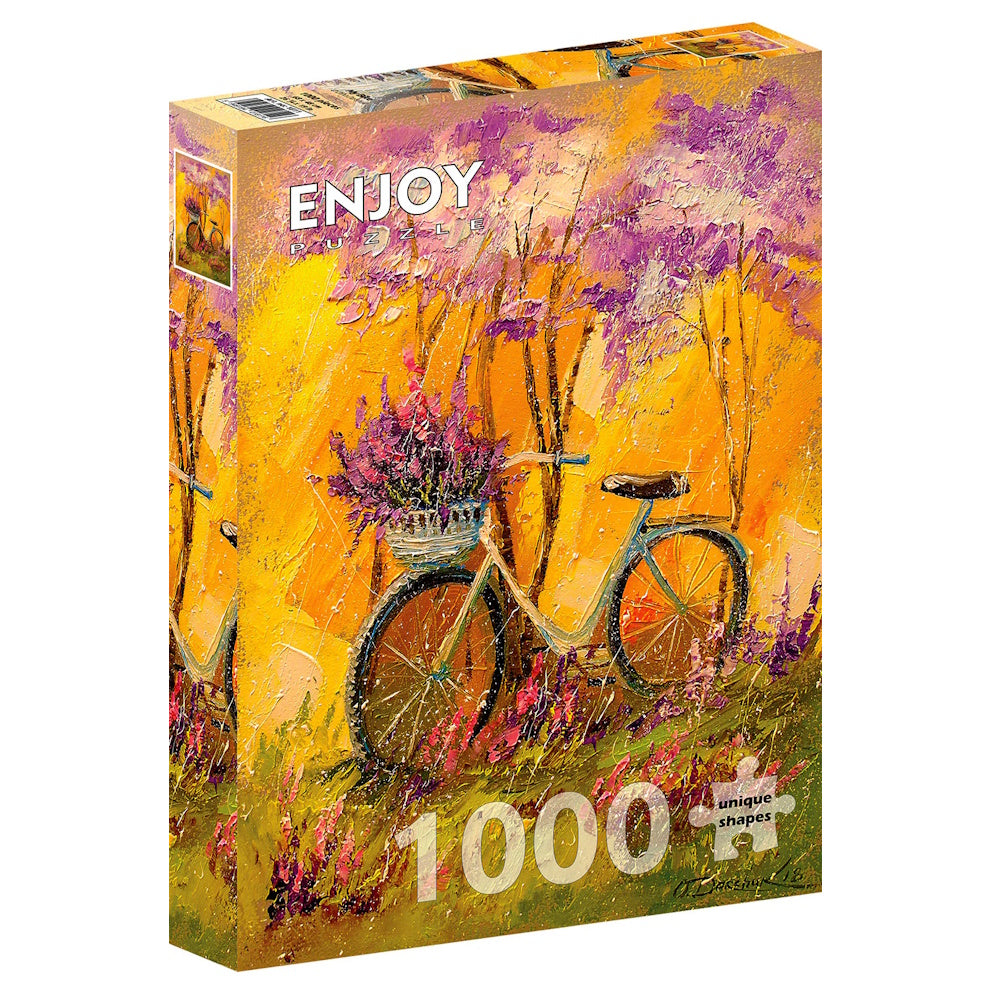 Step into a dreamy countryside scene with My Bike, a vibrant puzzle bursting with golden hues and soft purples. This artwork captures the charm of a vintage bicycle resting among blooming flowers, bathed in the warm glow of a sunlit day. With its impressionistic brushstrokes and radiant palette, this 1000-piece puzzle offers both a relaxing challenge and a piece of art to admire once complete.