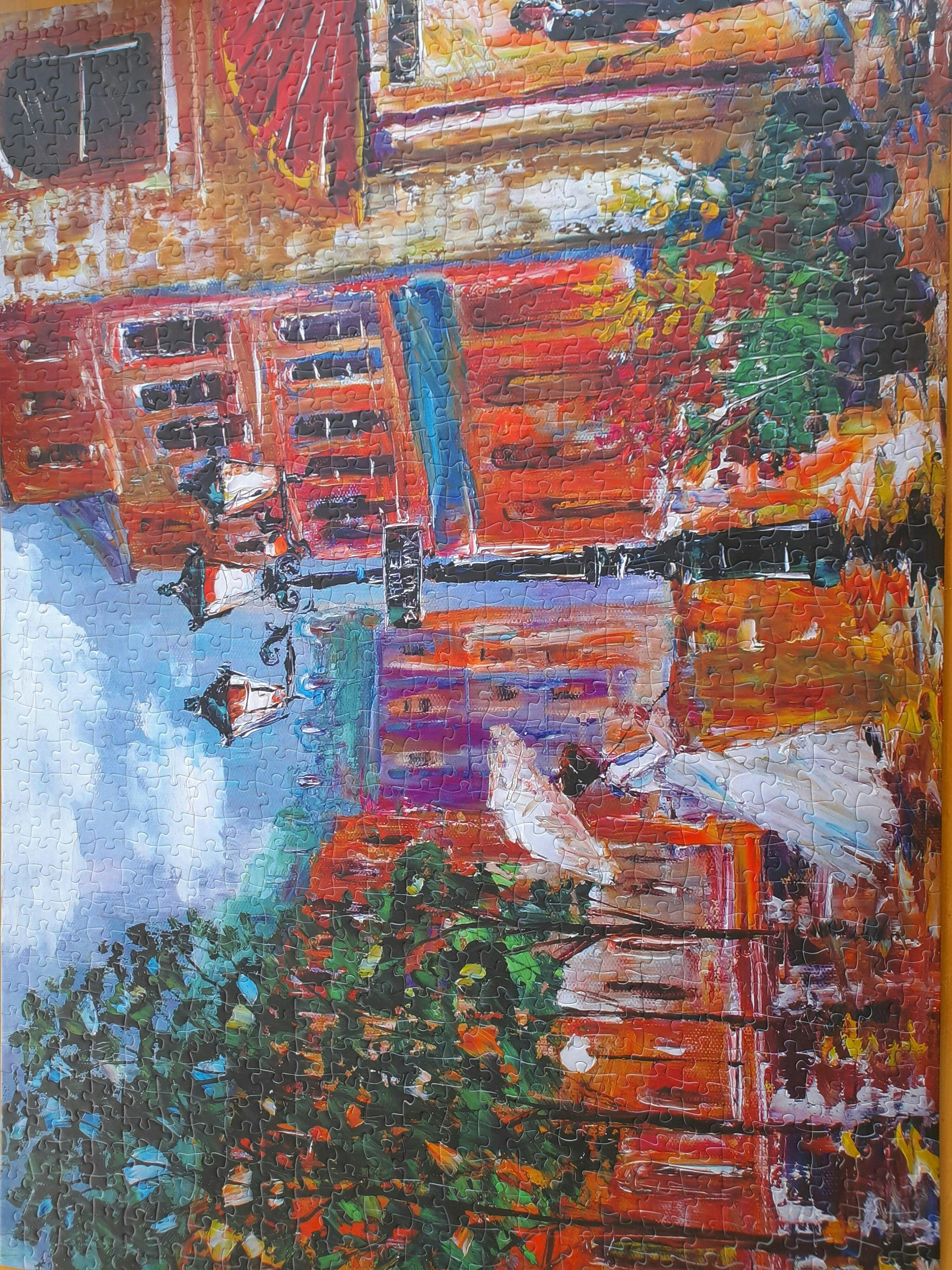 Step into the charm of Paris with this romantic 1000-piece jigsaw puzzle. Featuring a vibrant impressionist-style painting of a couple meeting under the glow of streetlamps on a rain-washed evening, the scene captures the magic of love in the City of Light. With its bold colours, painterly textures, and atmospheric details, this puzzle is both a delight to piece together and a stunning work of art to display once complete.