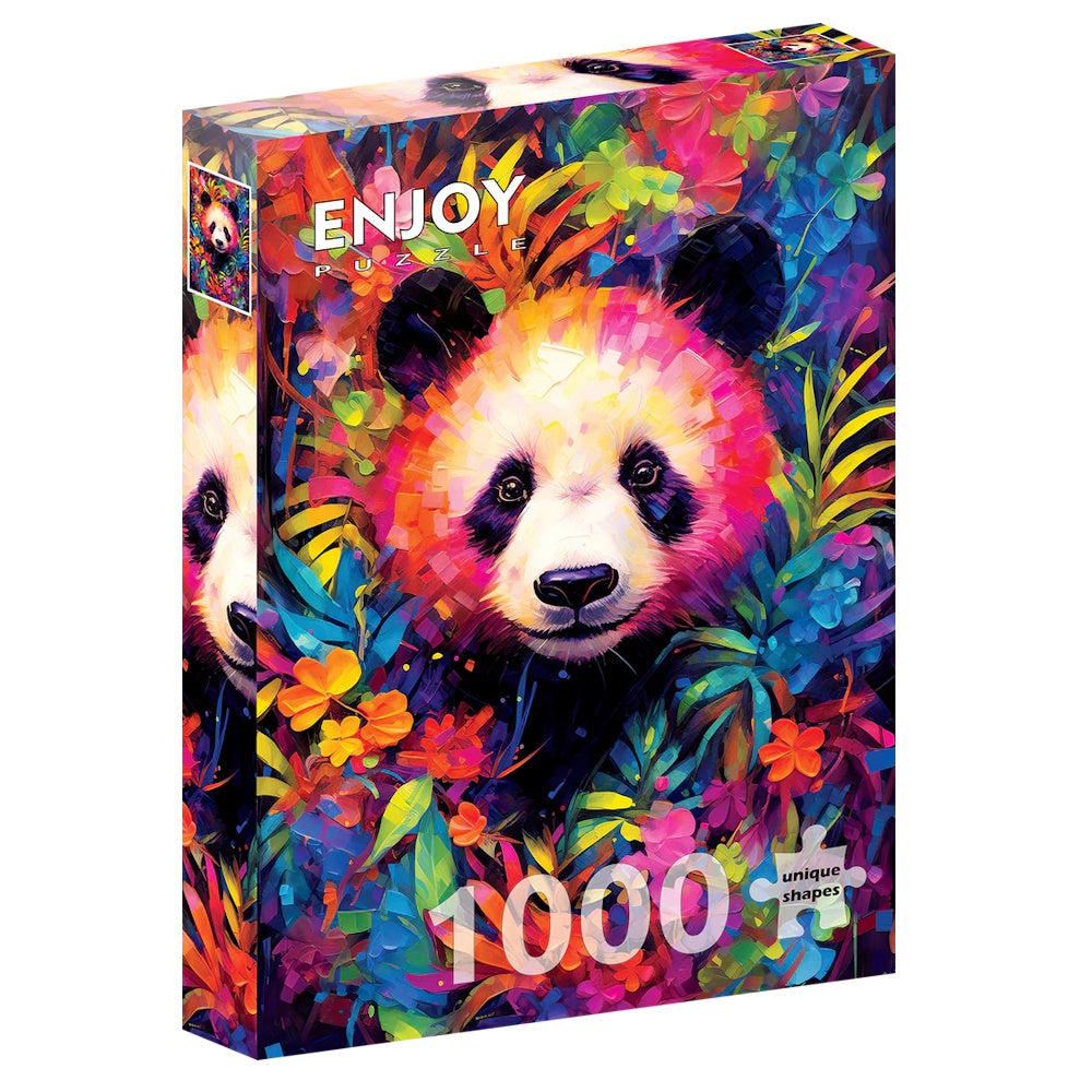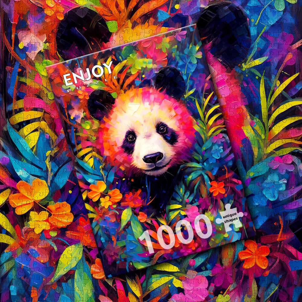 Step into a world of vibrant colours with this striking 1000 piece puzzle featuring a curious panda surrounded by a rainbow of tropical foliage. Bursting with bold hues and playful details, this artwork transforms the gentle panda into the star of a dazzling jungle scene. A delightful challenge for puzzle lovers, it’s perfect for anyone who enjoys nature, colour, and creativity coming together in one joyful image.