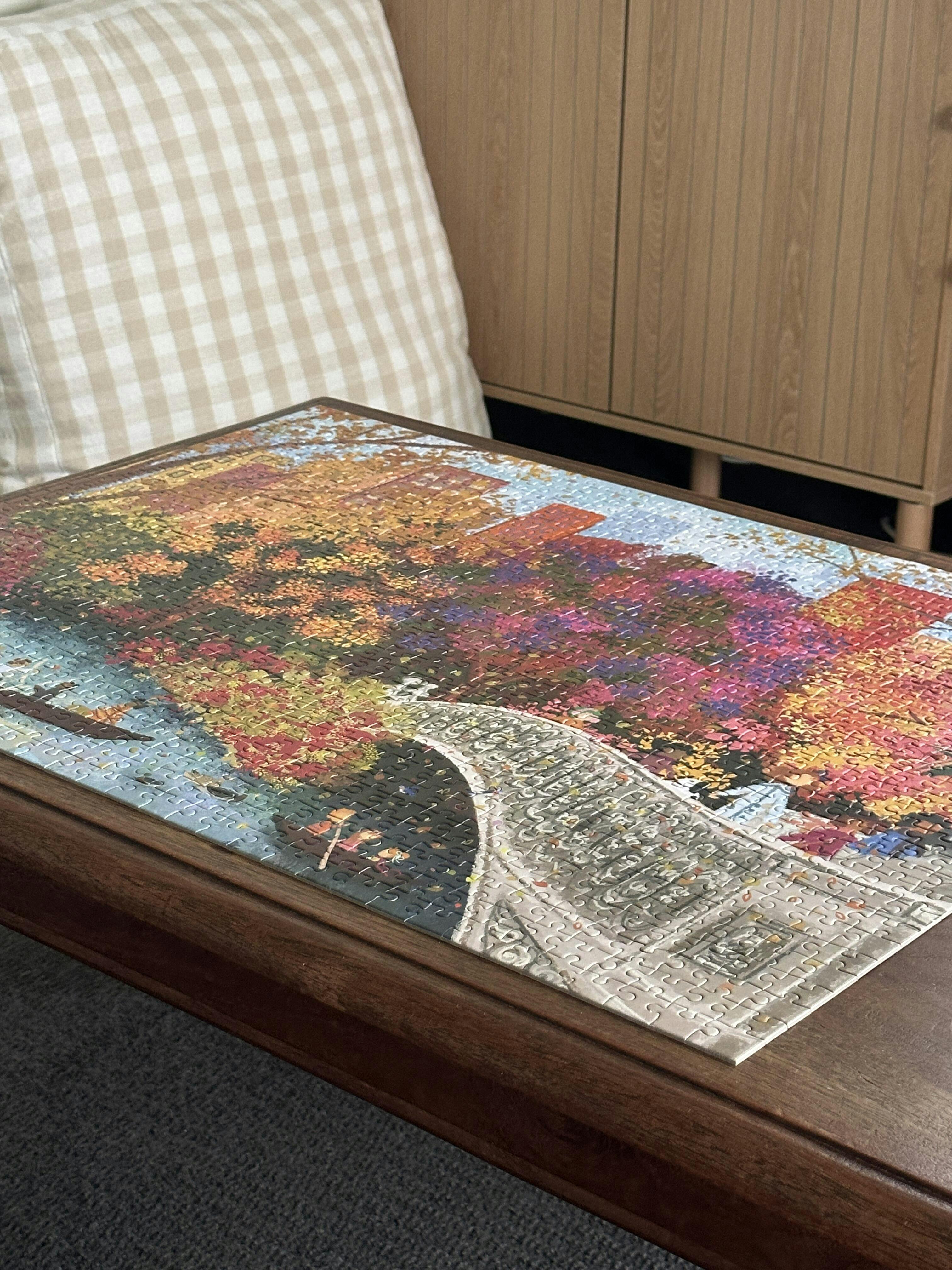 Experience the artistry of Joy Laforme with this challenging 1000-piece puzzle featuring the iconic Bow Bridge in autumn splendor. Perfect for puzzle enthusiasts, this meticulously designed puzzle showcases vibrant fall colours and intricate details that bring Central Park's famous landmark to life.