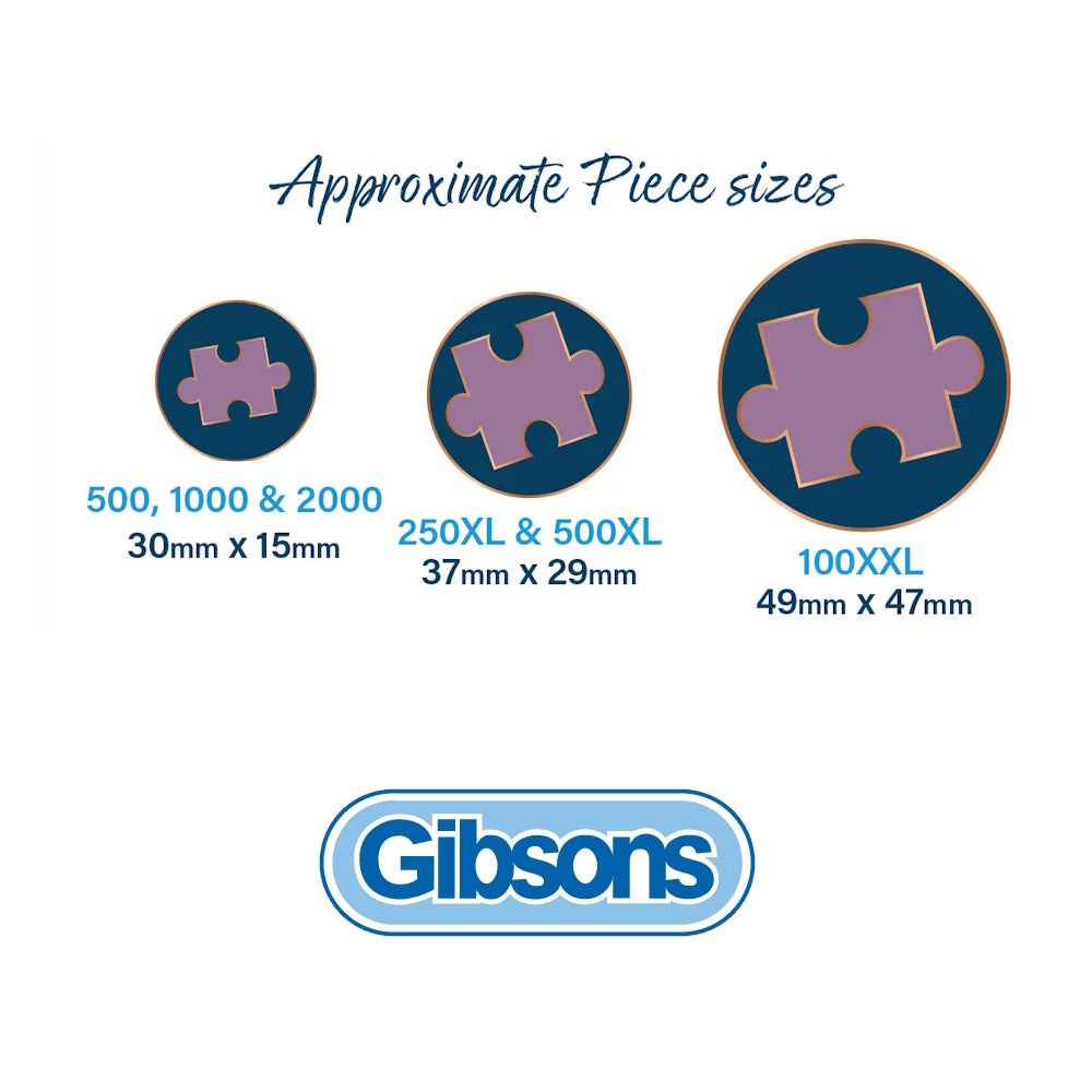 The pieces in Gibsons 500XL puzzles are double the size of those found in their 500 and 1000 piece puzzles. This means they are perfect for those who find larger piece counts too tricky, or those who are suffering with sight or handling difficulties.