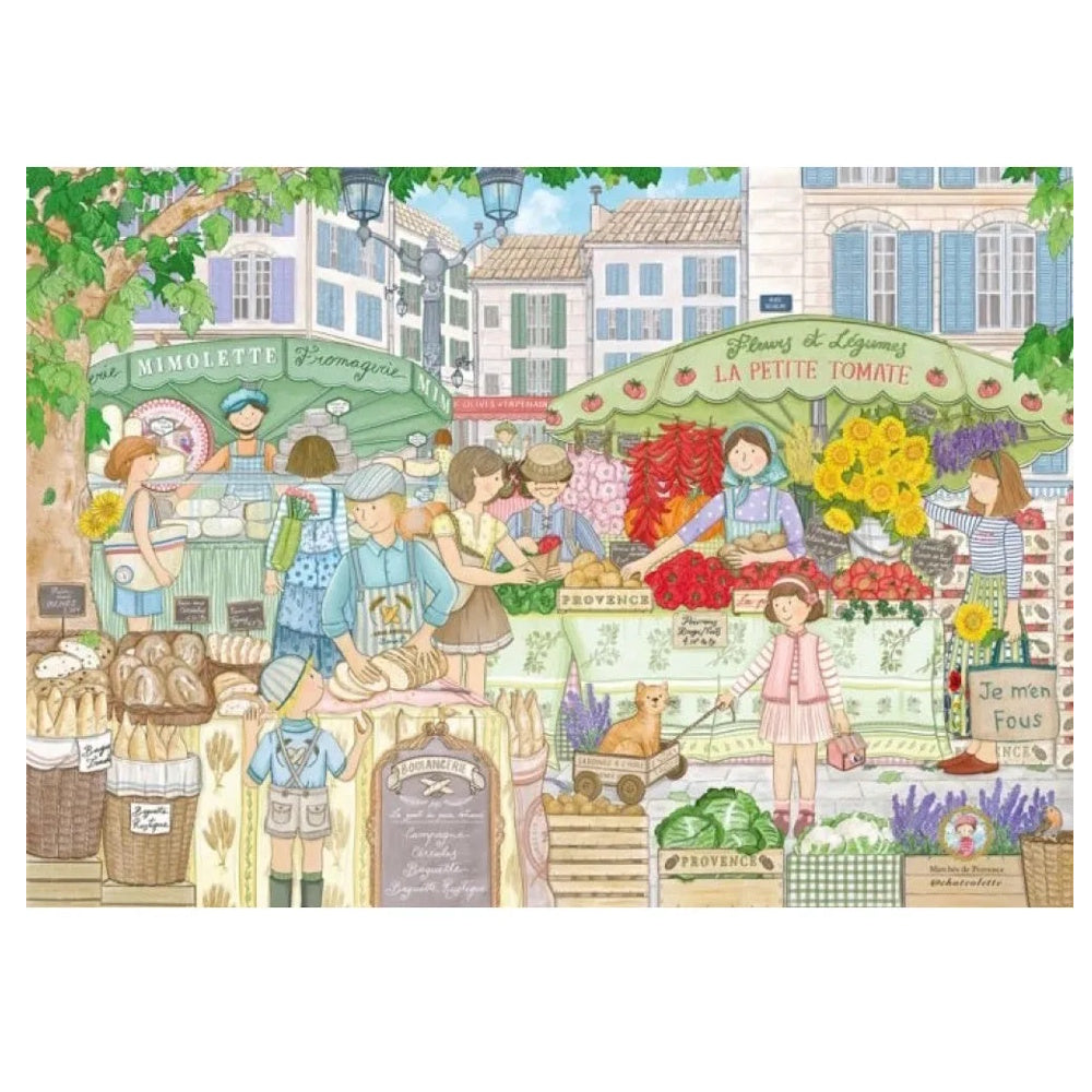 Take a sunny stroll through the heart of southern France with Marchés de Provence by Le Chat Collete. This vibrant 1000-piece puzzle brings a bustling French market to life—overflowing with fresh bread, colourful produce, cheerful vendors, and charming little details at every turn.