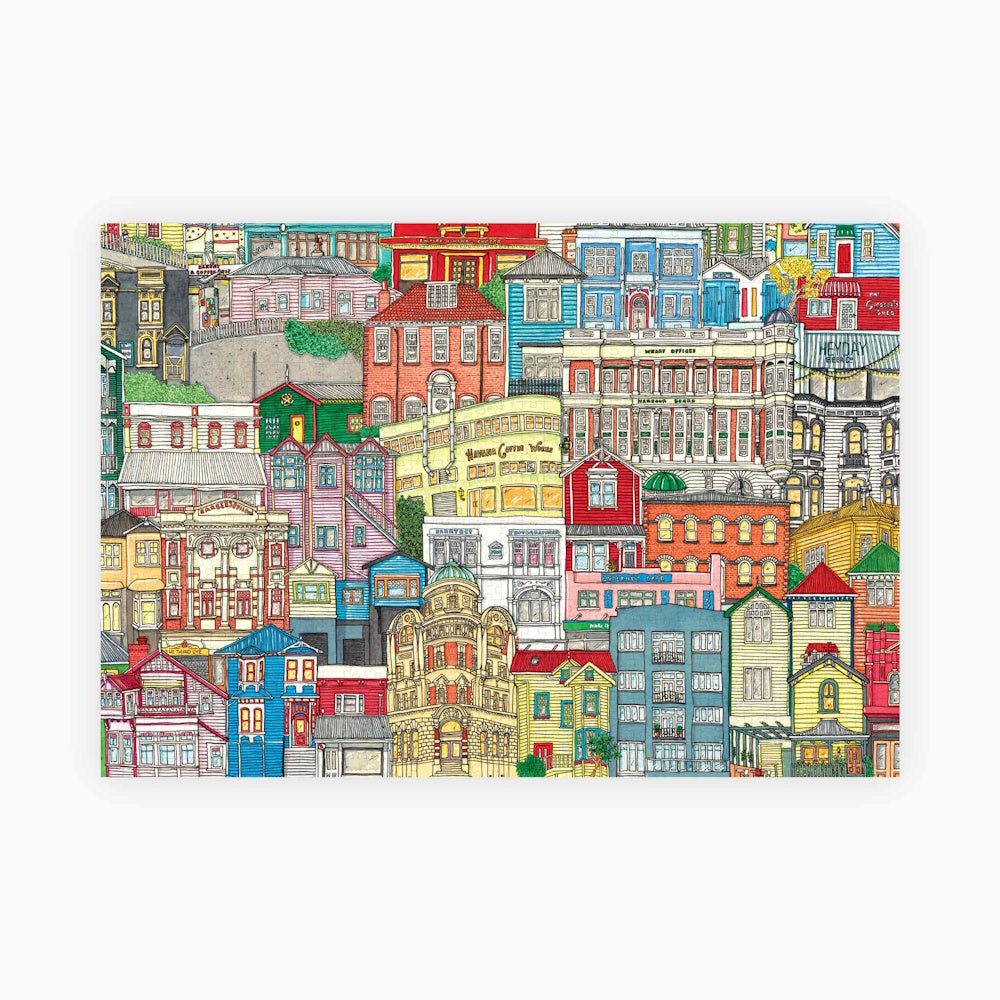 Celebrate the charm and colour of city life with Neighbourhood—a vibrant 1000-piece puzzle featuring a joyful cluster of quirky buildings, each full of personality. Inspired by artist Stacey Fraser-Allen’s first glimpse of Wellington’s hillside homes, this puzzle is a love letter to the city’s creative spirit and unforgettable character.