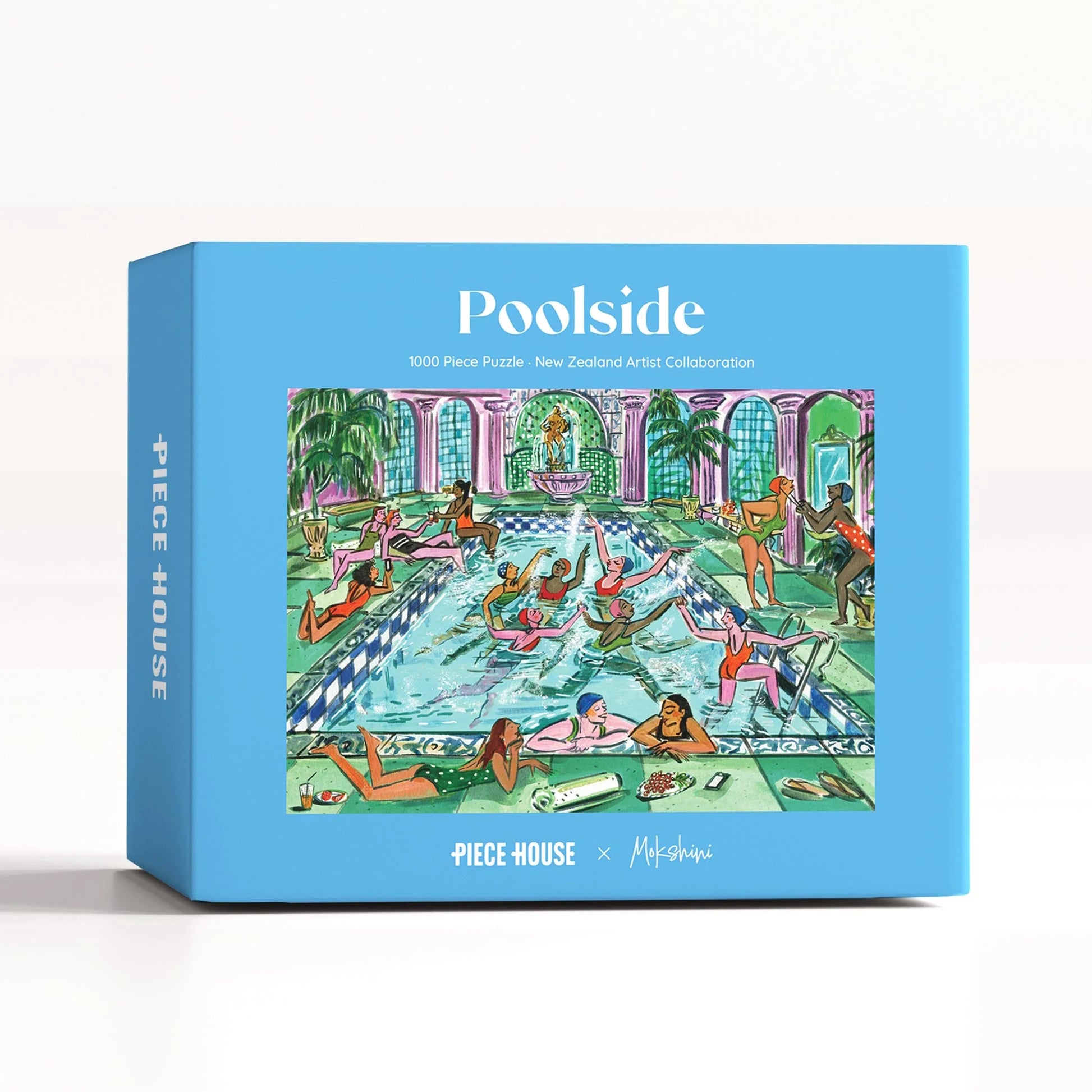 Immerse yourself in the vibrant world of Poolside, a celebration of womanhood, friendship, and community. This 1,000 piece puzzle from PieceHouse captures graceful movements of synchronised swimmers and the serene camaraderie of lounging women sharing stories. Against the backdrop of a Budapest inspired Bathhouse, this captivating scene transports you to a lavish retreat of a bygone era.