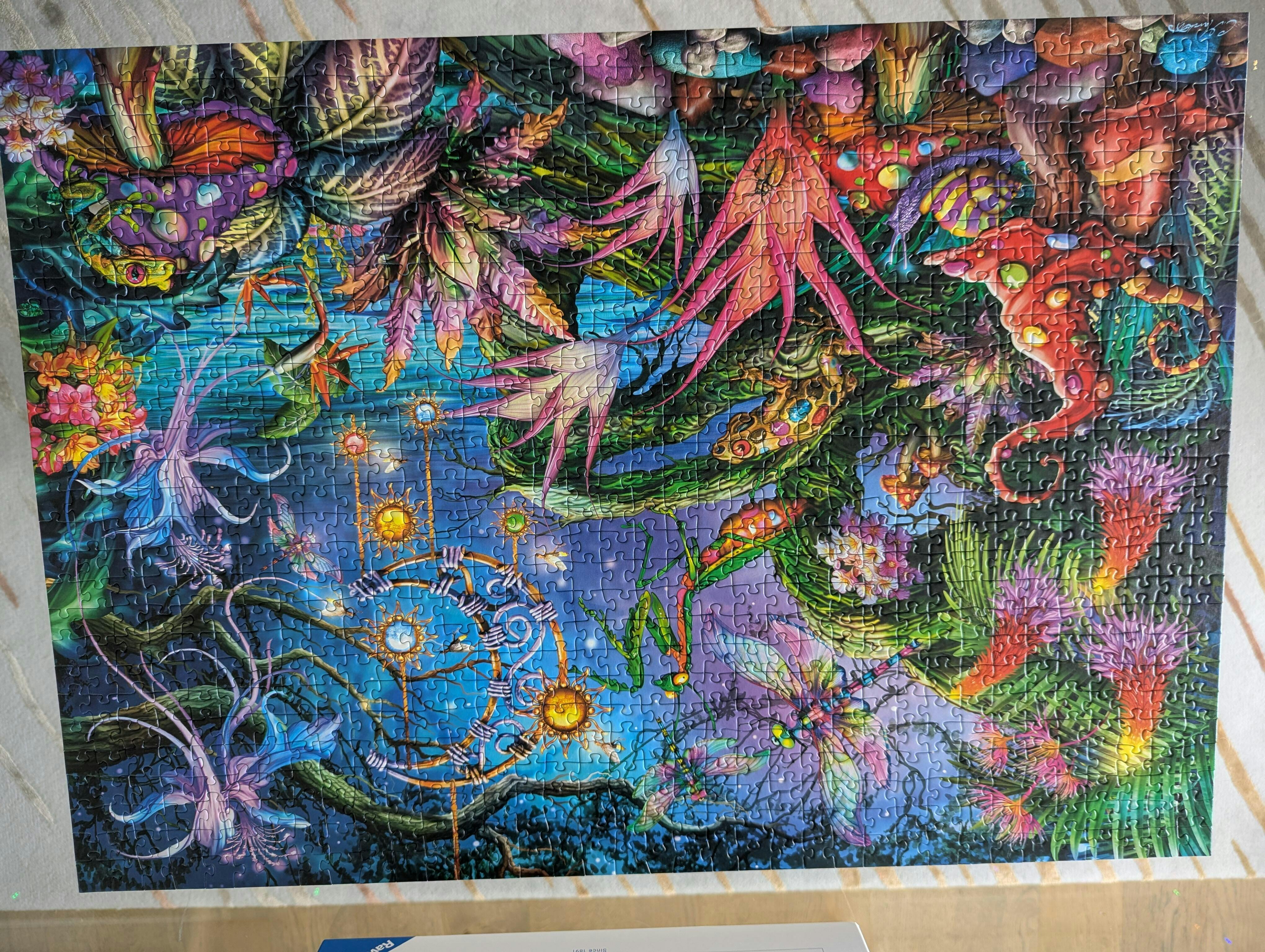Step into a vivid dreamworld with Ravensburger's 1000 Piece Puzzle "Rainbow Reverie", featuring the fantastical artwork of renowned illustrator Ciro Marchetti. Bursting with colour and imagination, this lush forest scene is alive with glowing plants, enchanted insects, and magical creatures. With every piece, you'll be transported deeper into a surreal paradise of vibrant hues and whimsical wonder.