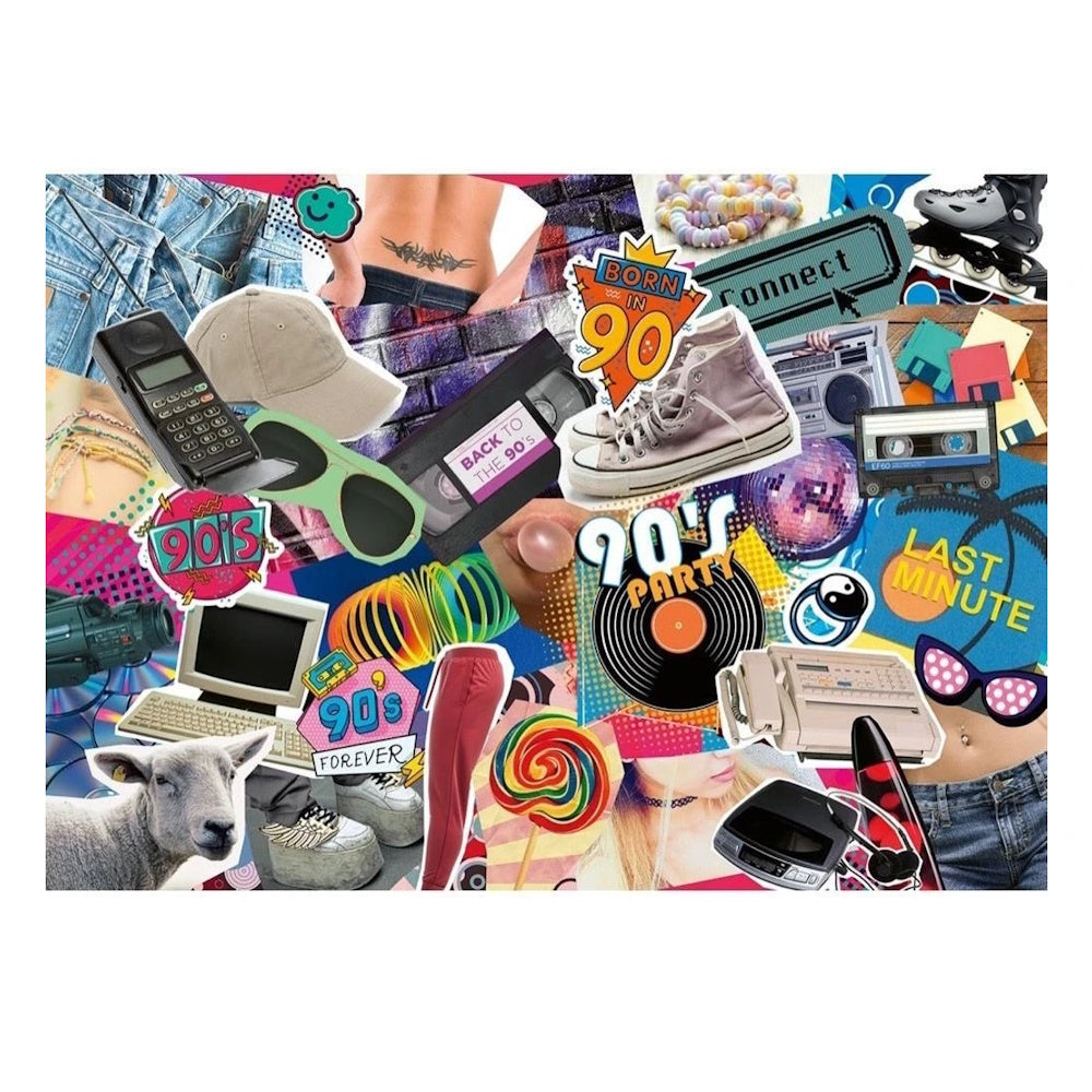 Take a trip down memory lane with The 90s puzzle! This vibrant collage is packed with nostalgic favourites — from Discmans and fax machines to acid-wash denim, rollerblades, and more. A must for anyone who lived it (or just loves it), this puzzle is a fun and colourful celebration of a totally unforgettable decade!