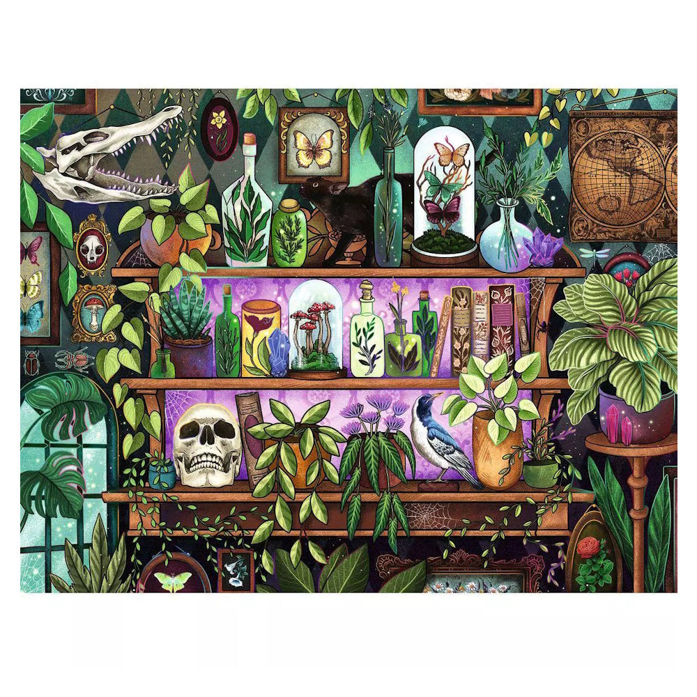 Explore the magical side of nature with this richly detailed 2000-piece puzzle from Ravensburger. Bursting with botanical wonders, curious plants, and enchanted greenery, this witchy shelf is also home to potions, crystals, books, and mystical oddities.