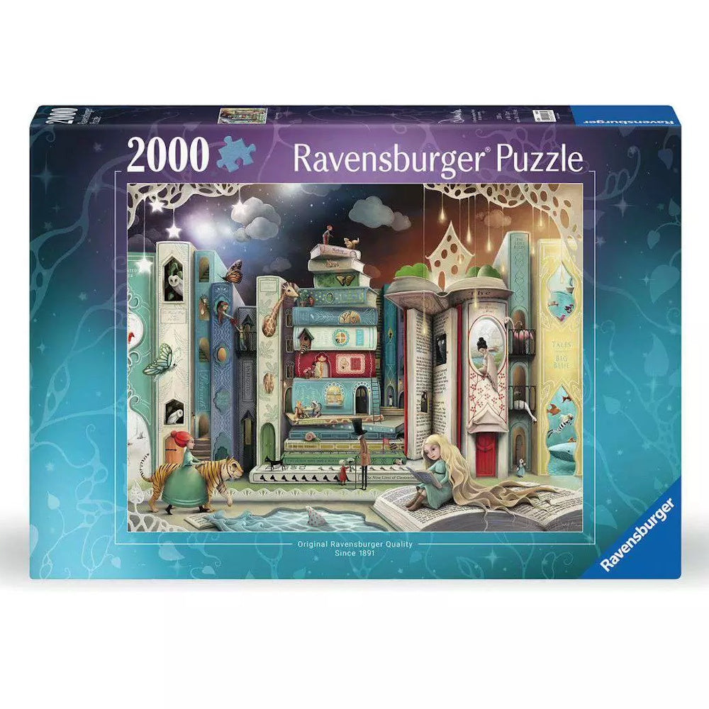 Step into a magical world of books and imagination with “Novel Avenue,” a stunning 2000-piece puzzle illustrated by Demelsa Haughton. Her enchanting artwork transforms book spines into whimsical storybook buildings, where curious characters peek out from pages and tiny tales unfold behind every door. Filled with intricate detail, fantastical creatures, and dreamlike charm, this puzzle is a true celebration of storytelling and visual wonder.