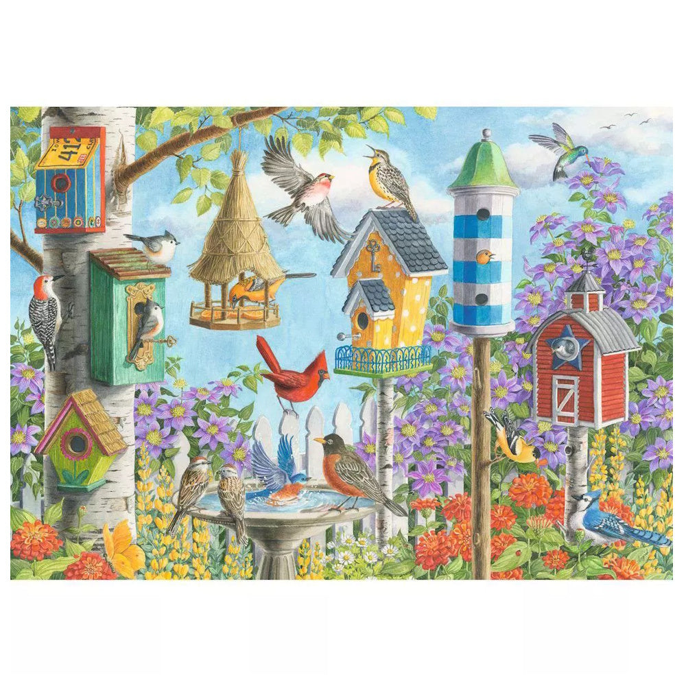 Welcome to a backyard full of colour and charm with Home Sweet Home, a 300 Piece Large Format Puzzle from Ravensburger. This delightful scene features a lively gathering of birds and beautifully detailed birdhouses nestled among blooming flowers. With larger pieces that are easy to see and handle, it’s perfect for puzzlers with visual impairments or anyone who prefers a more comfortable, accessible challenge.