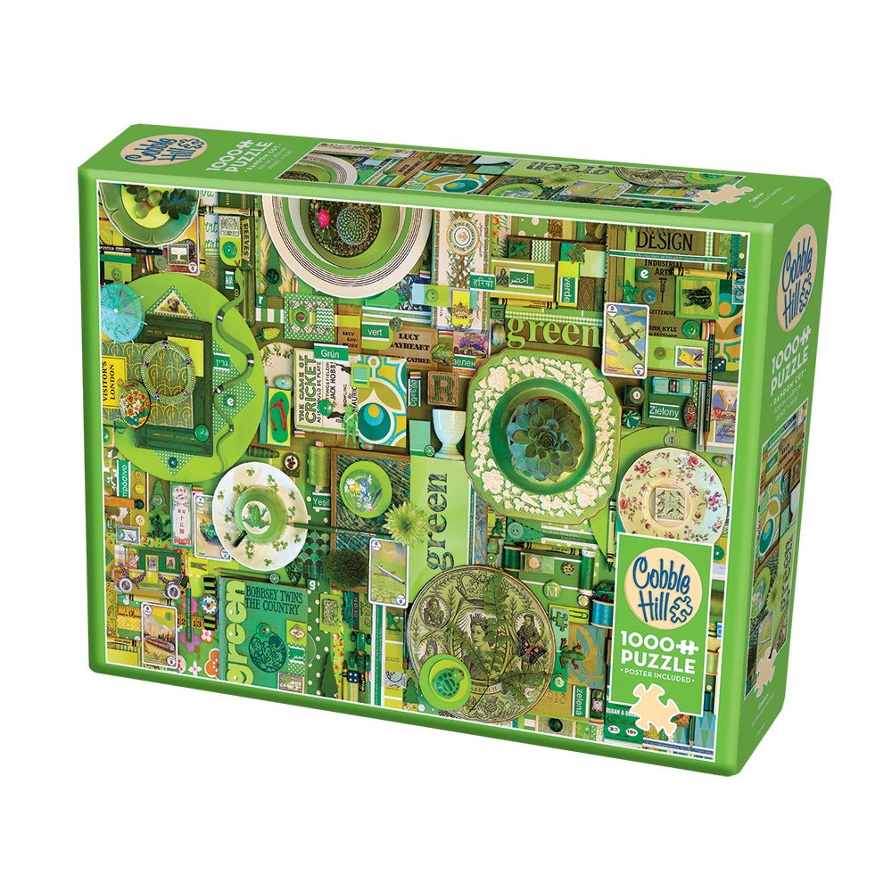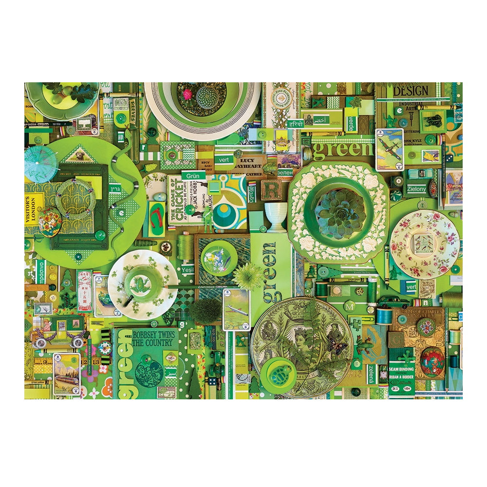 This special 1000 piece jigsaw puzzle by artist Shelley Davies celebrates all things Green. It's one in a series of seven puzzles that make up a rainbow theme when all are completed and aligned next to each other, spanning 4.7m. Ribbons of the word, "green" are spelled out in multiple languages, along with vintage knick knacks and a pencil with the artist's name on it. Green is great all year long, but especially fun to give as a St. Patrick's Day gift!