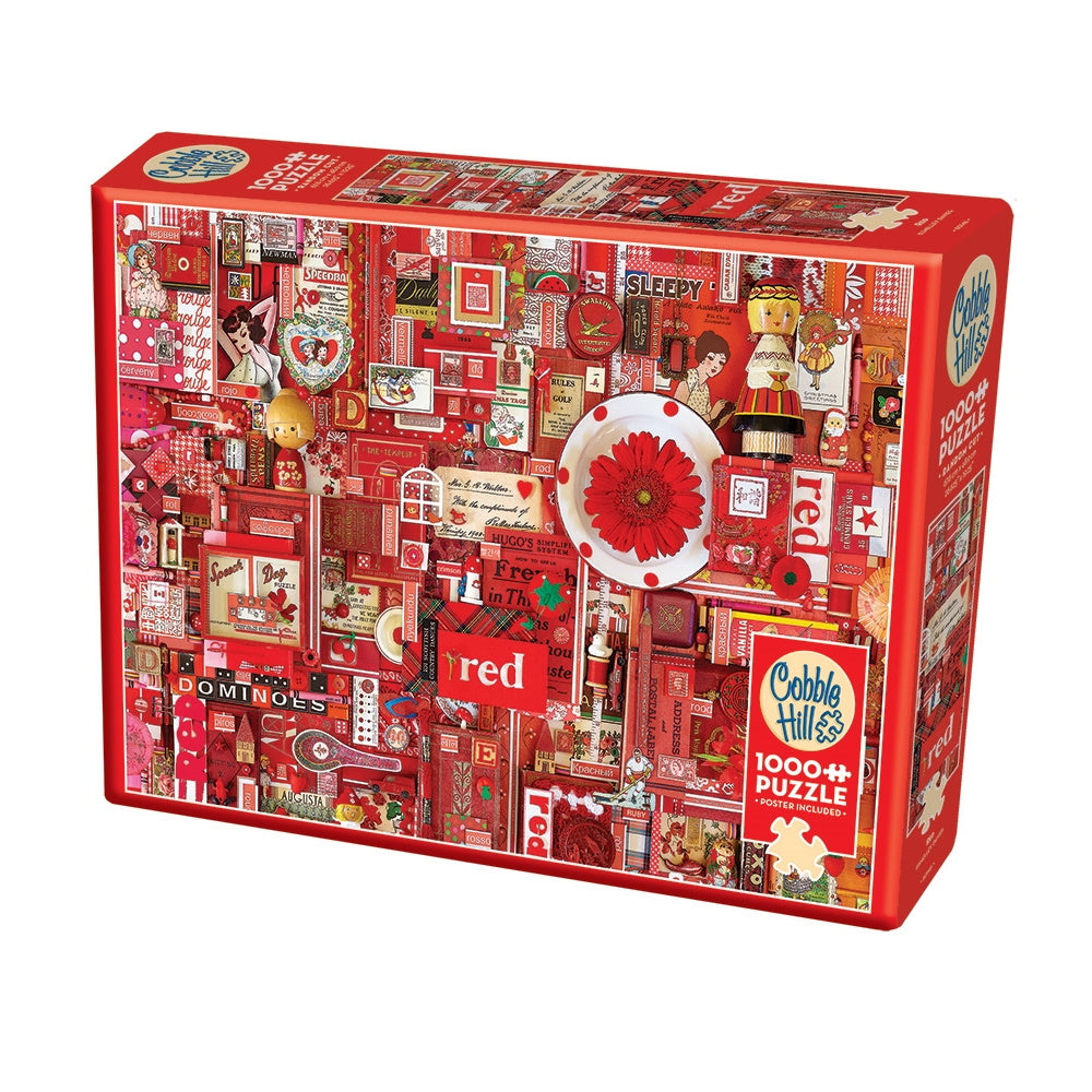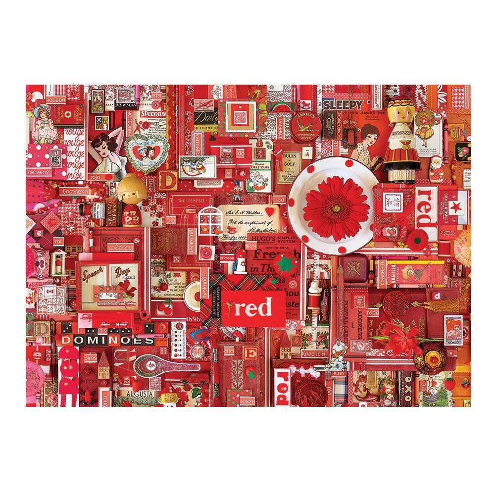 This special 1000 piece jigsaw puzzle by artist Shelley Davies celebrates all things Red. It's one in a series of seven puzzles that make up a rainbow theme when all are completed and aligned next to each other, spanning 4.7m. Ribbons of the word, "red" are spelled out in multiple languages, along with knick knacks and a pencil with the artist's name on it. Red is a vibrant puzzle and with it's vintage Valentine's cards and OXO, it makes for a perfect Valentine's gift.